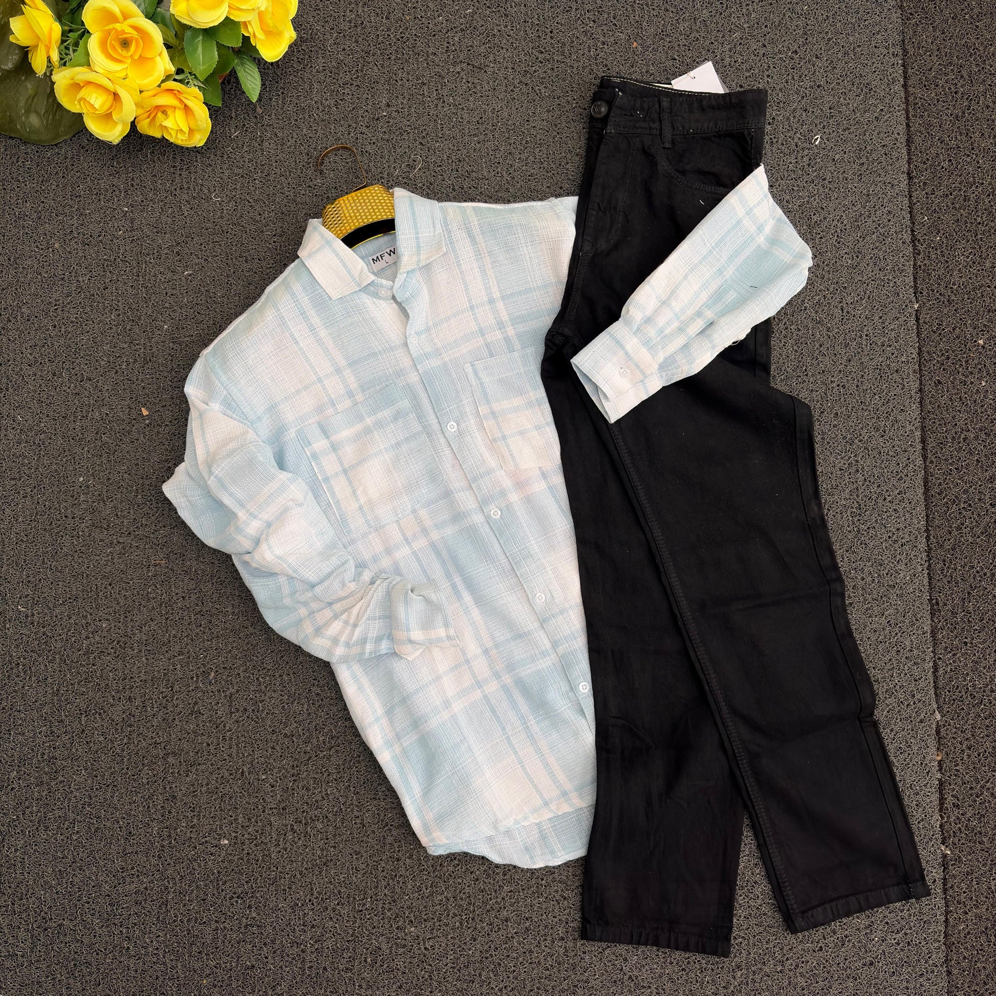 2 in 1 combo Dobby double pocket back print shirts + Mom fit jeans pant combo buy @600